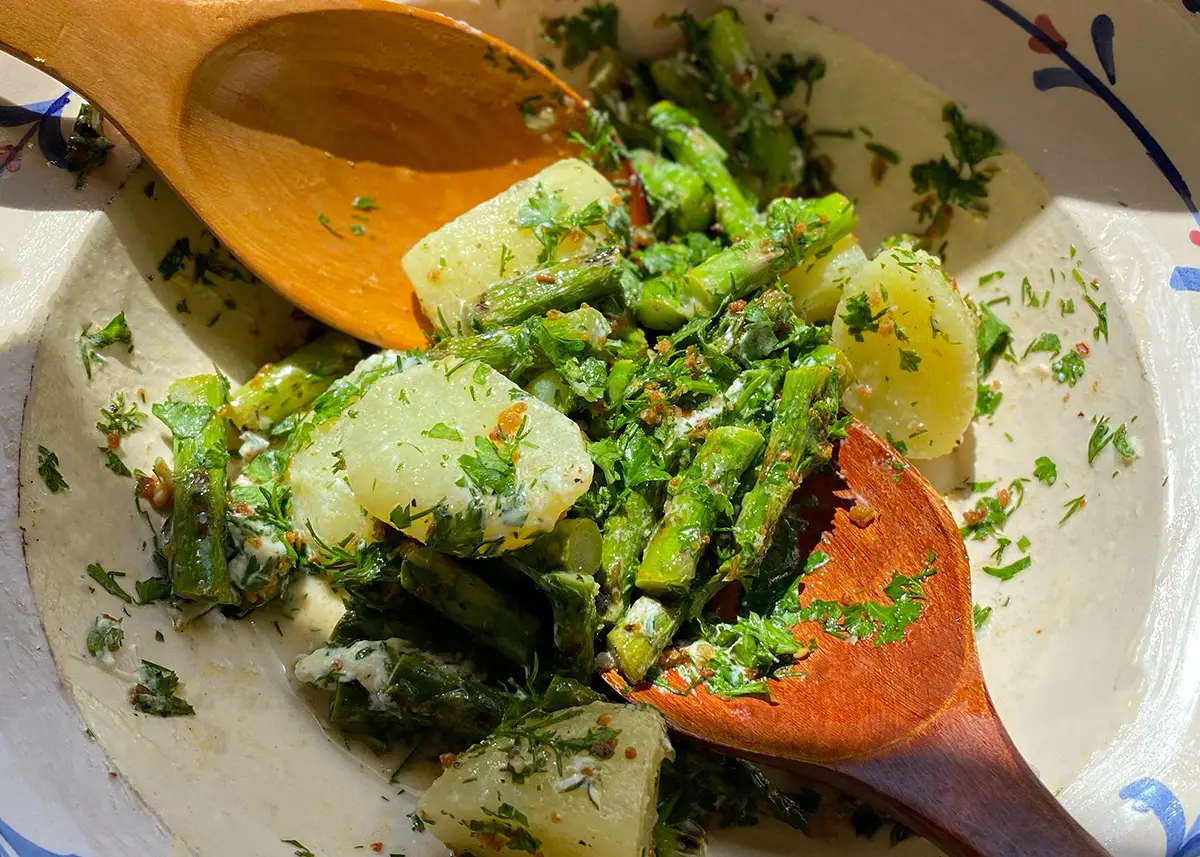 We ate our salad with some boiled waxy potatoes and then afterwards tossed them through the left overs… if you’re that way inclined add some potatoes too!