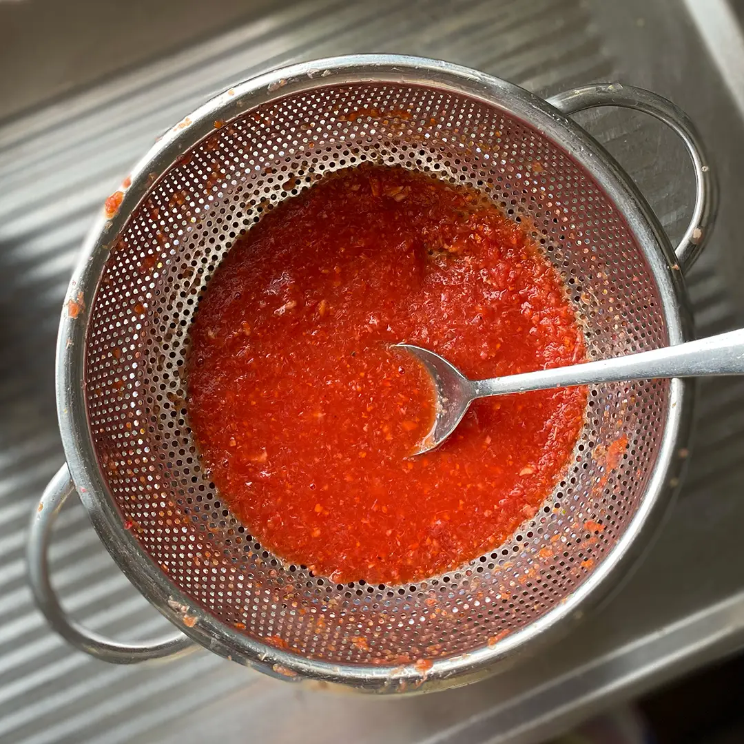 To make, freeze little ice trays of blended peeled citrus (we did oranges, grapefruit, lemon, tangelo), fresh turmeric and ginger (lots of it), black pepper, a little splash of apple cider vinegar and we had a pomegranate that needed using so we popped that in too. Strain through a not-too-fine sieve to remove any bulky bits and chuck in the freezer.
