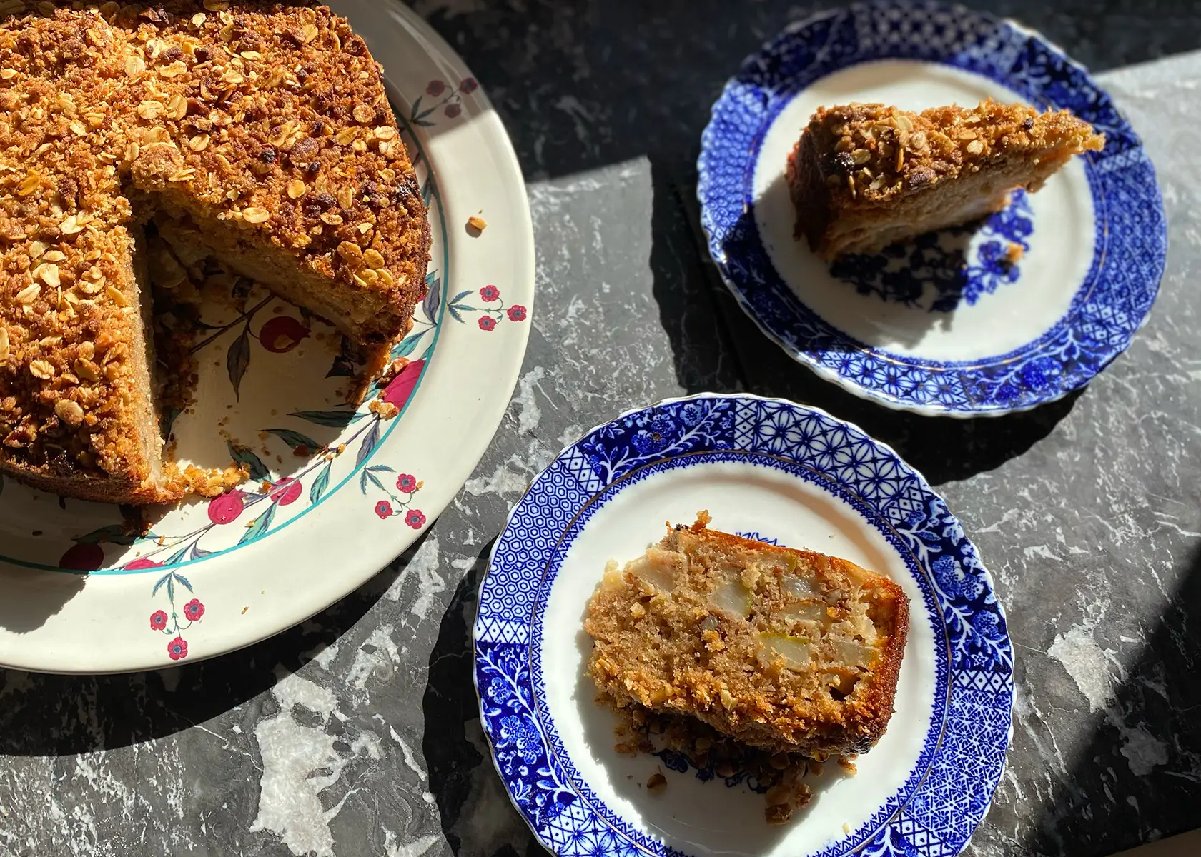 Jude Blereau’s Pear Harvest Cake is much loved. Part warming oat crumble, part amazing spelt cake, it somehow excels at both. This cake is equally wonderful with chopped up rhubarb or feijoas, so no matter what you have at hand this Autumn, you know you can whip it up – pop the kettle on!