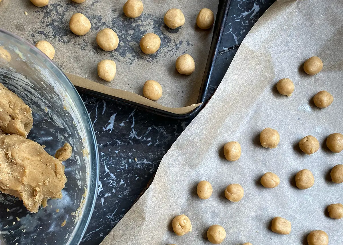 Put the little balls on a baking tray lined with baking paper.