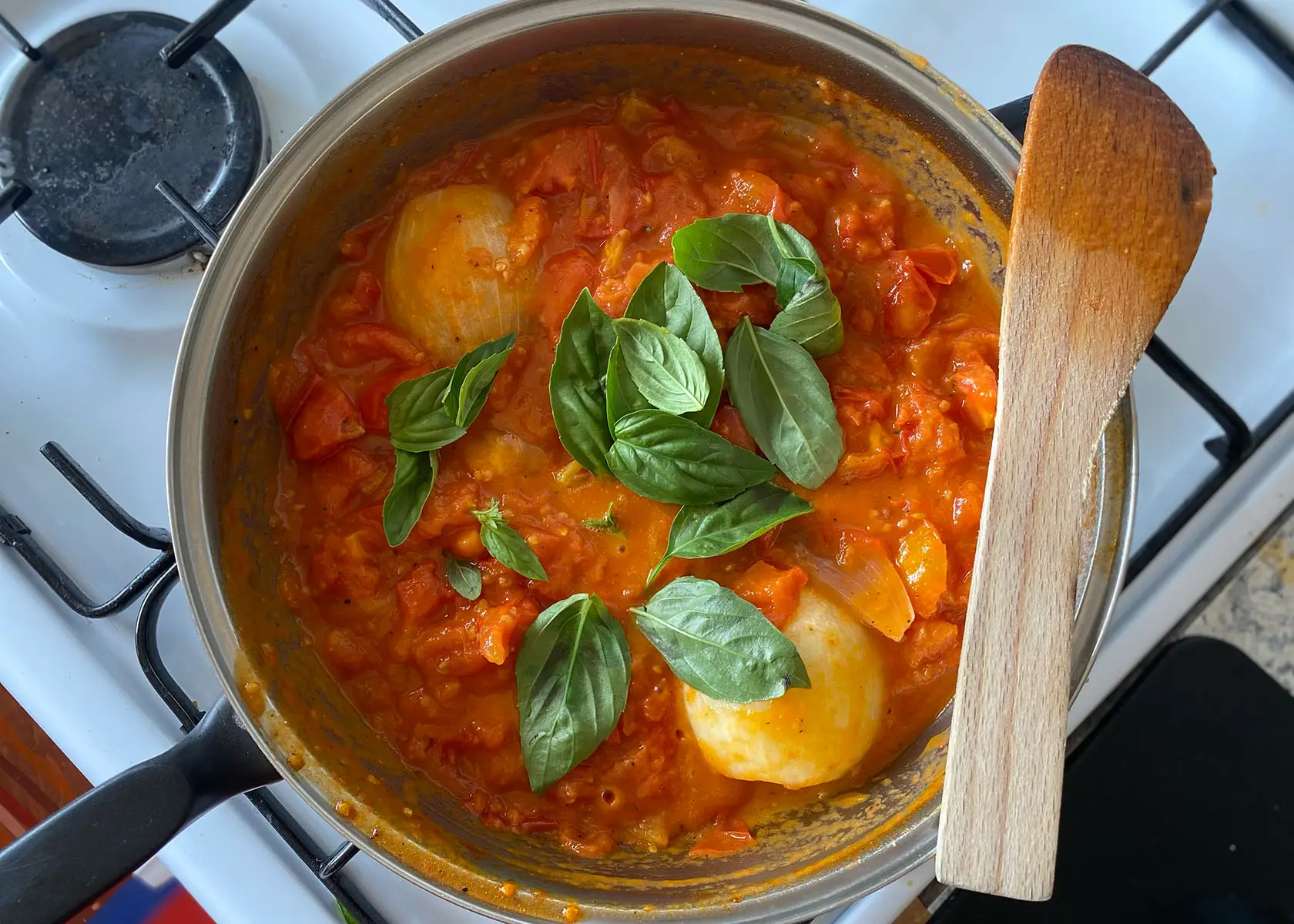 This is possibly the most celebrated of all the tomato sauces. Three ingredients, minimal faff and 45 mins later you’ve got a silky, rich sauce