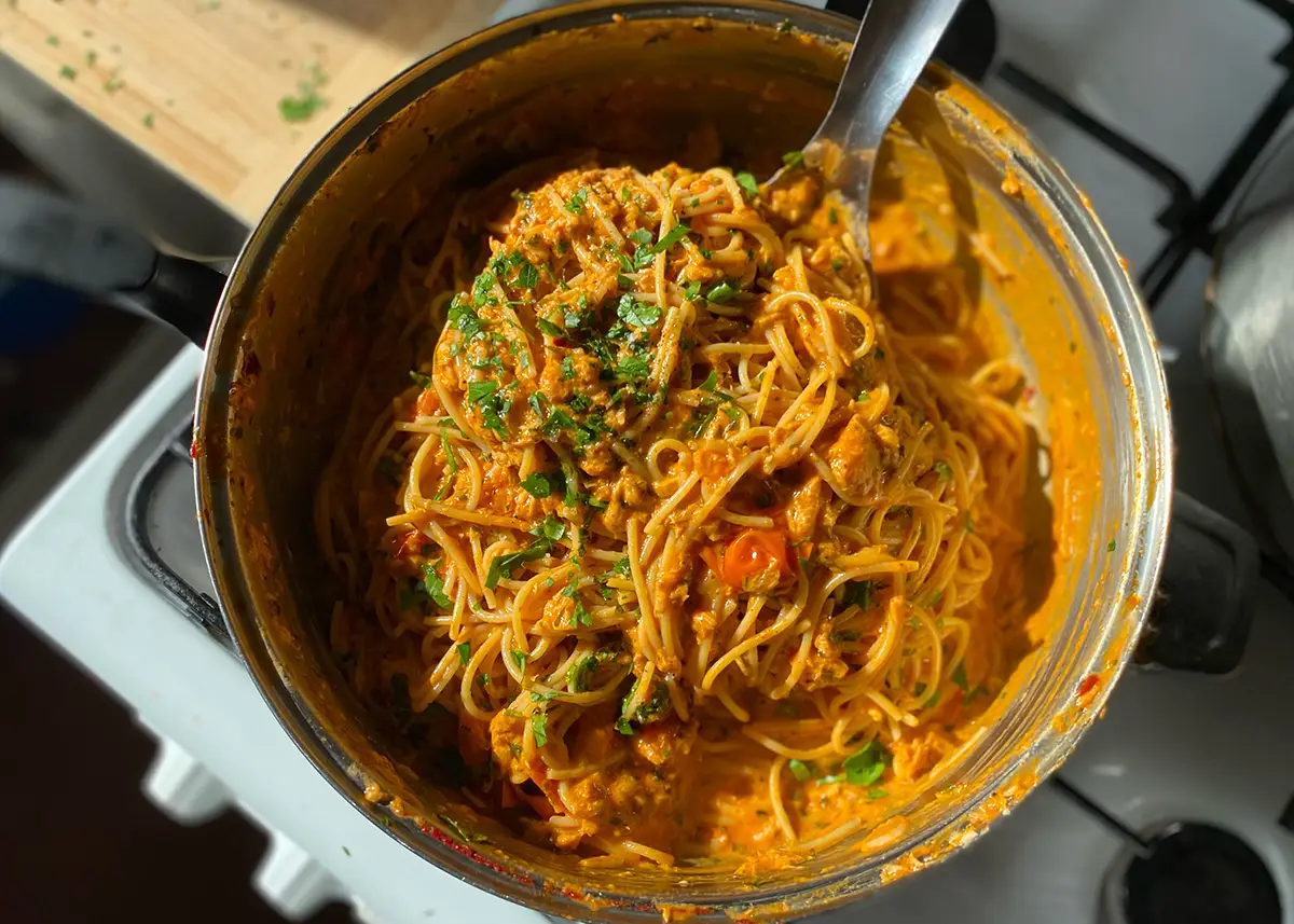 We saw Ixta Belfrage make this easy peasy, bung it all in, stir it round tuna ragu and knew we had to give it a go!