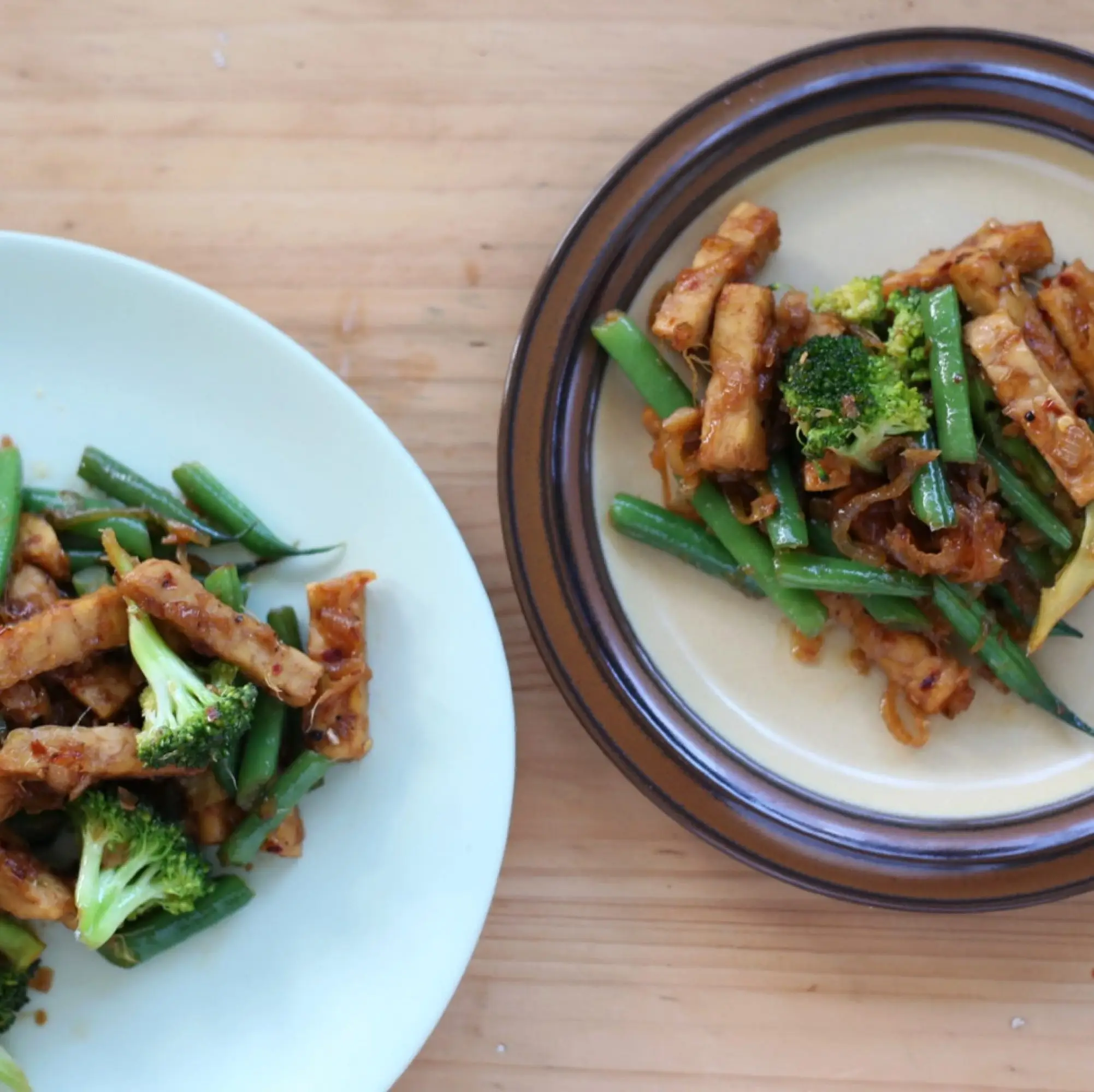 Sweet and spicy pepper tempeh with green beans