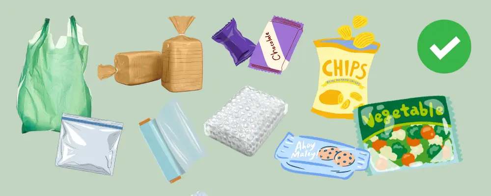 Recycle soft, scrunchable plastics that are clean and dry. These include: