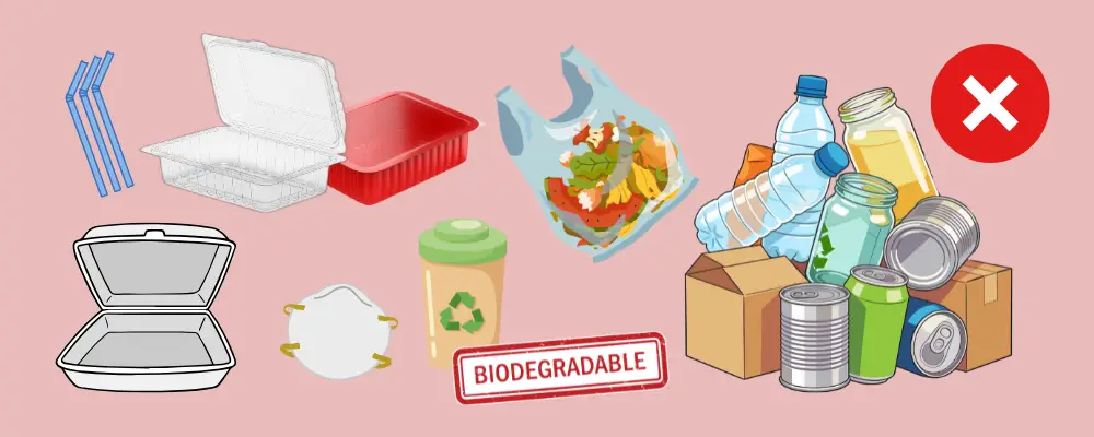We cannot recycle these items. Put them with household recycling, green waste or rubbish: